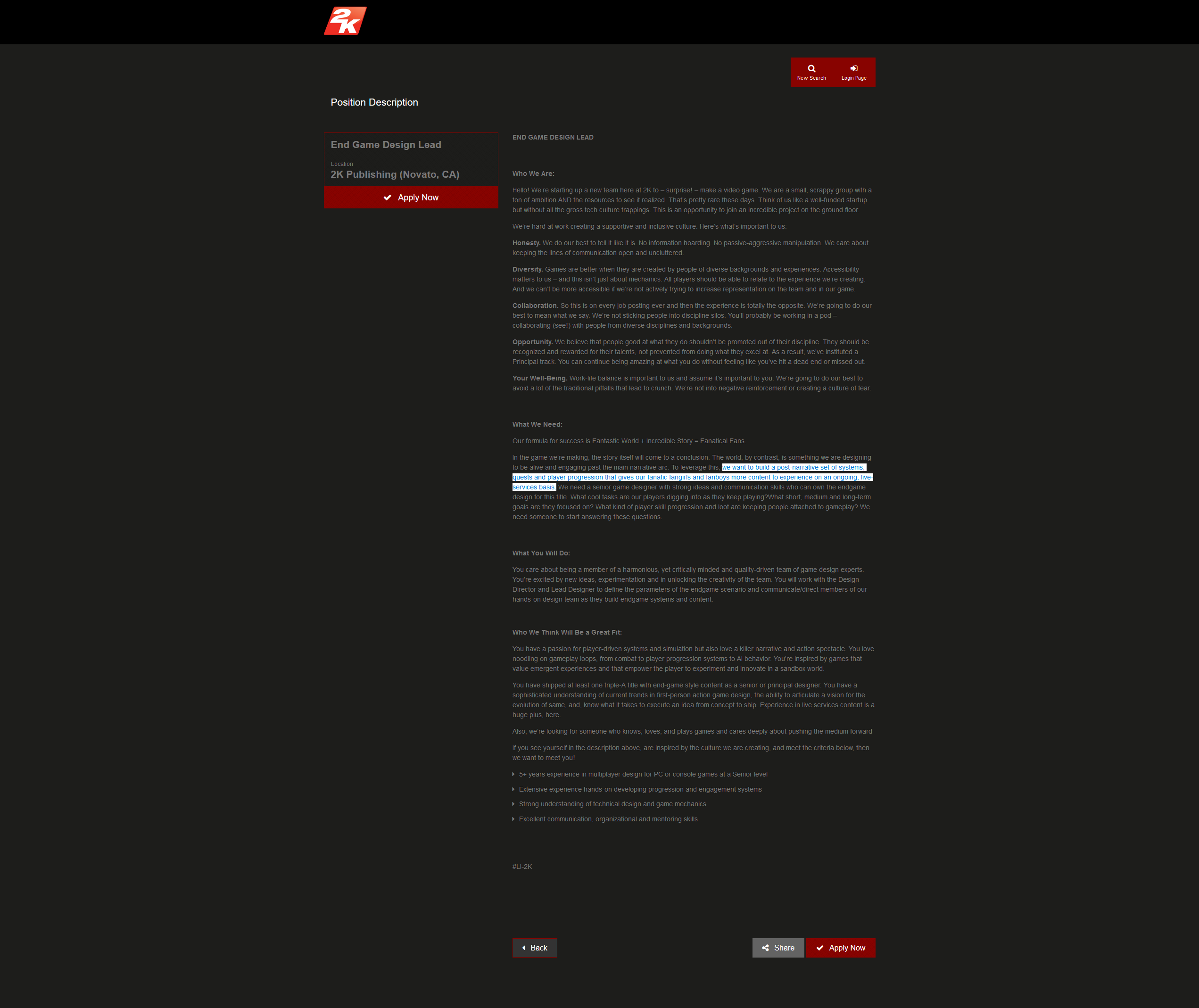 Más de un año después de que algunas informaciones señalaran a algunos creativos tras Mafia III como responsables de un nuevo BioShock, una oferta de empleo publicada por la propia 2K Games deja entrever que este ansiado videojuego, aún no anunciado de forma oficial, apostaría por el modelo de juego como servicio.
